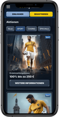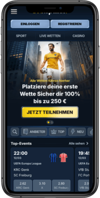 100 % Sport Willkommensbonus bis zu 250 € bei der ersten Einzahlung
