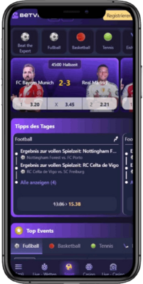 Die mobile Betvibe App ist für Android-Geräte verfügbar und kann direkt von der Website heruntergeladen werden. Sie bietet Nutzern Zugriff auf alle Funktionen des Sportwetten Angebots und verfügt zudem über Push-Benachrichtigungen, um Nutzer über Veranstaltungen und Werbeaktionen zu informieren.