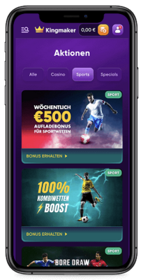 Eine native mobile App für Android oder iOS stellt Kingmaker derzeit nicht zur Verfügung. Stattdessen setzt der Anbieter auf eine vollständig mobile-optimierte Website. Diese bietet nahezu den gleichen Funktionsumfang wie die Desktop-Version und läuft stabil auf allen gängigen Endgeräten.