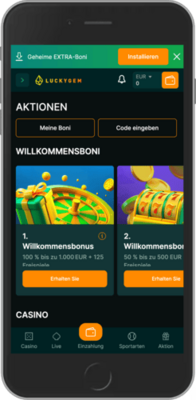 Neu registrierte Nutzer können bei ihrer ersten Einzahlung das Willkommensangebot von Luckygem in Anspruch nehmen. Der Mindestbetrag, den sie überweisen müssen, beträgt 20 EUR, und sie können einen 100 % Einzahlungsbonus von bis zu 100 EUR erhalten. Nachdem der Bonusbetrag 10 Mal umgesetzt wurde, wird das Guthaben als Gratiswette gutgeschrieben. Der Bonus kann für alle Pre-Match- und Live-Sportkategorien verwendet werden.